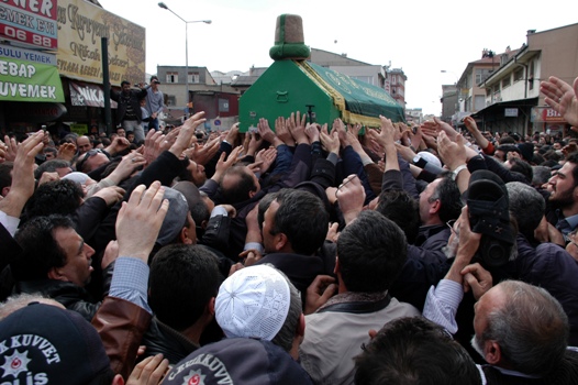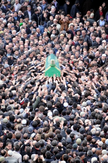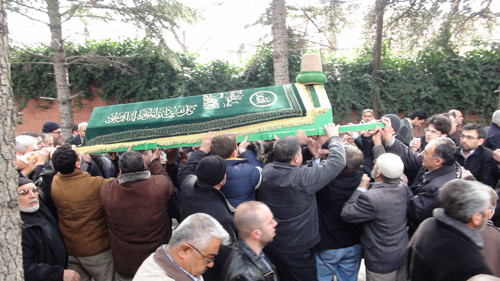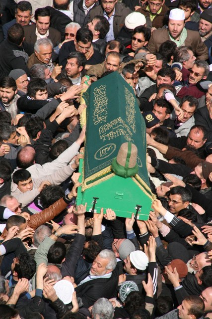 -Hocaefendinin cenazesi Kapu Camii’nden Üçler Mezarlığına 10 dakikalık yolu omuzlar üzerinde yaklaşık 2,5 saatte aldı.