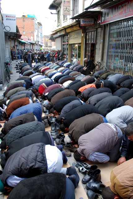 -Kapu Camii Civarındaki esnaf dükkanları kepenklerini kapattılar, Kapu Camii civarındaki çarşı cenaze namazına iştirak etmek isteyen insanlarla doldu.